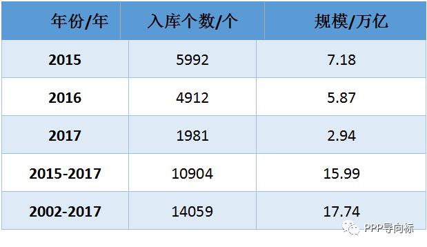 表1:2002年-2017年我国PPP入库项目统计表