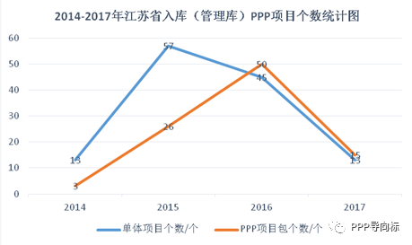 图1:2014-2017年江苏省入库(管理库)PPP项目个数统计图