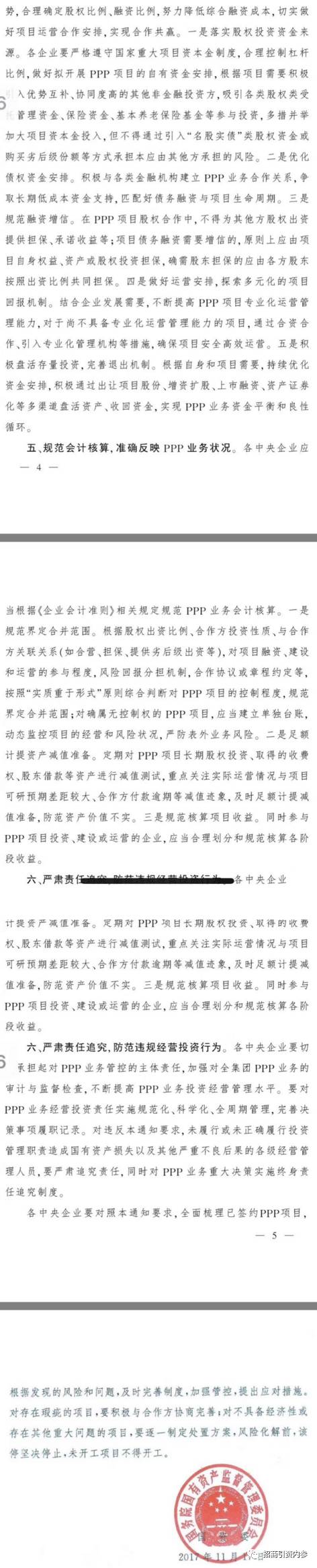 国务院国资委《关于加强中央企业PPP业务风险管控的通知》